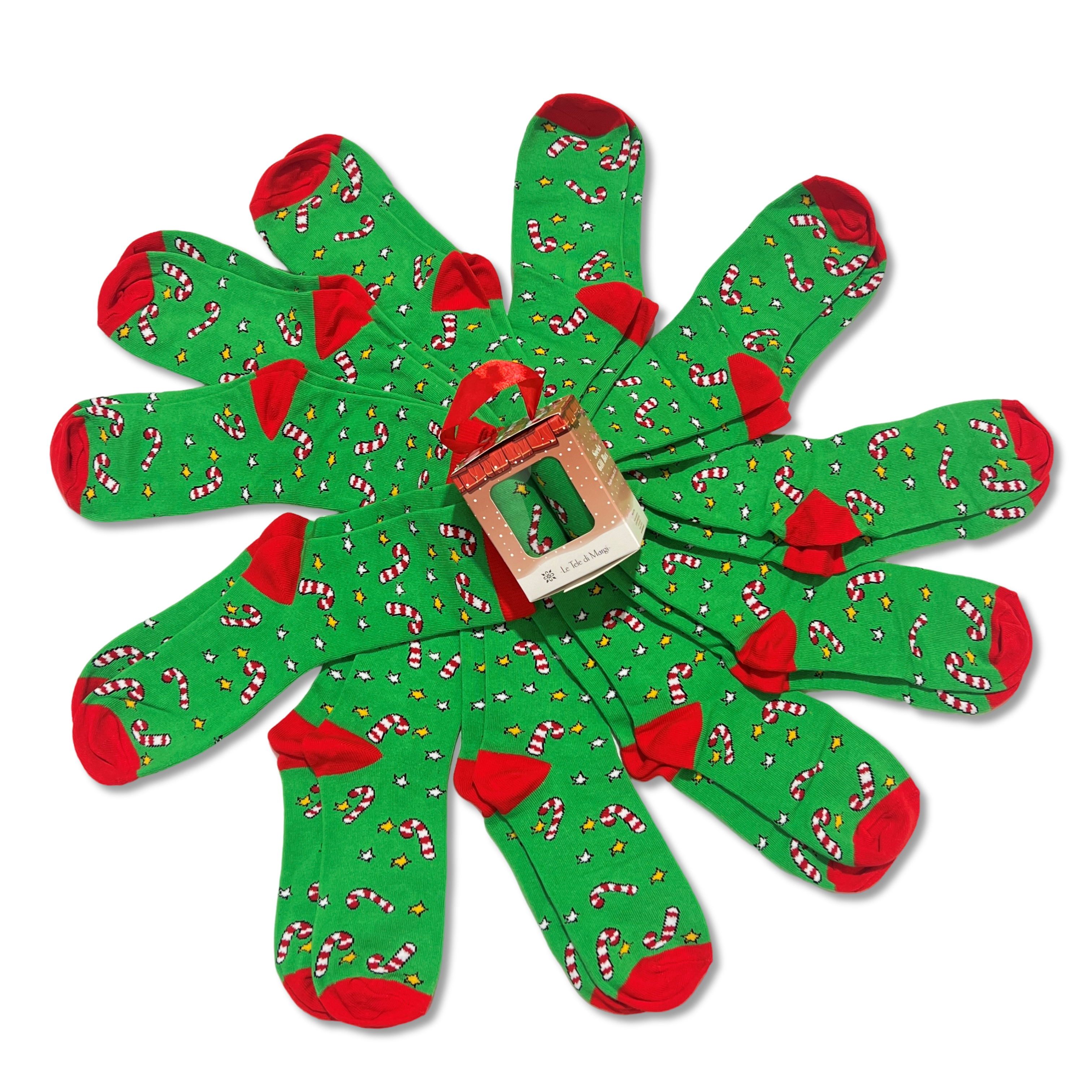 • Box 12 Paia Calze Natalizie Dolciumi e Stelline
