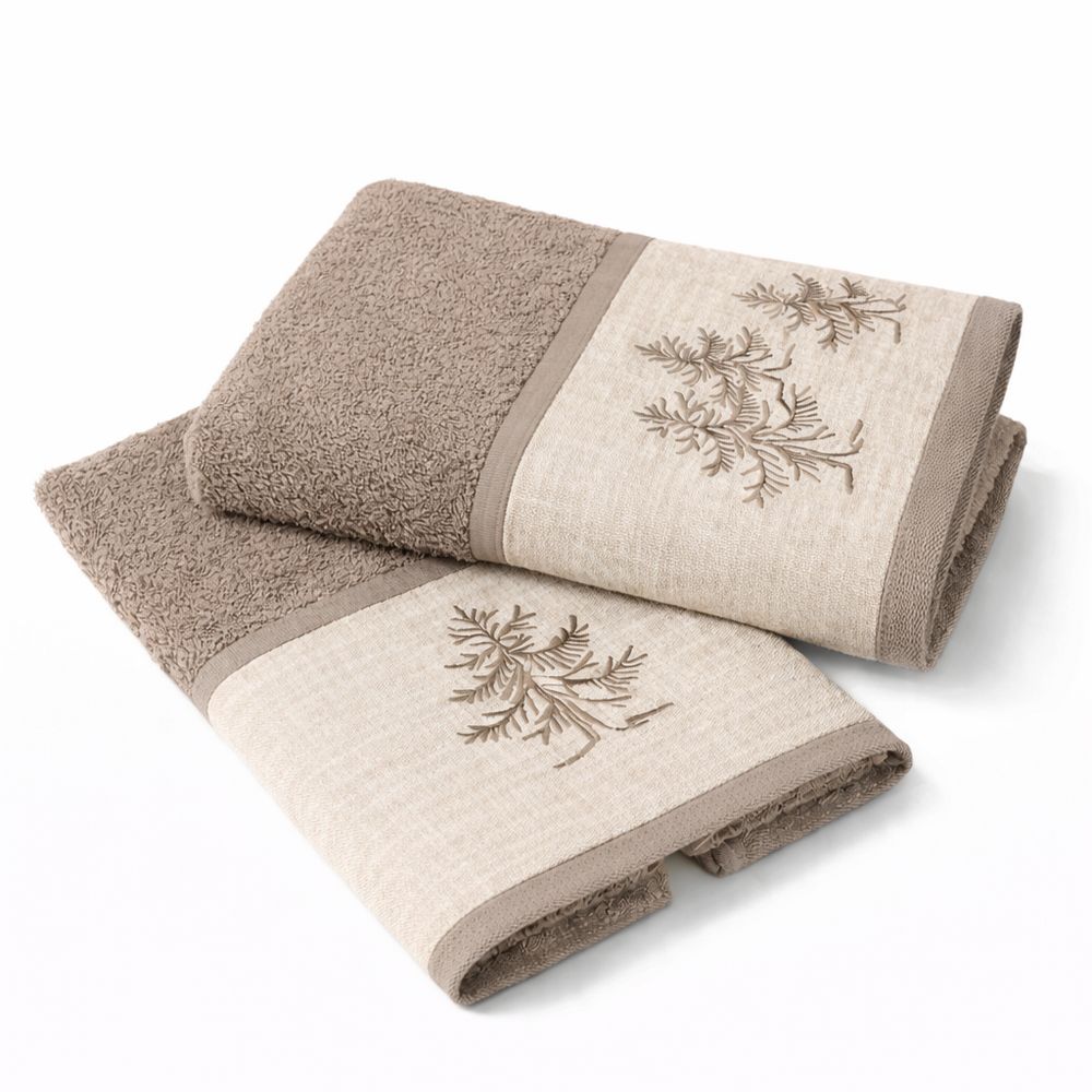 La coppia asciugamani CREOLE Valdes esprime un’eleganza naturale ispirata ai toni caldi della montagna e allo stile chalet, perfetta per arredare il bagno con gusto e raffinatezza. Realizzati in 100% cotone con spugna da 600 g/m², garantiscono un tessuto più denso, morbido e resistente, ideale per chi cerca comfort elevato e qualità duratura.